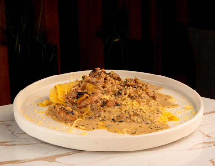Crepe de tocino, champiñones y parmesano. Sabores reconfortantes en cada…