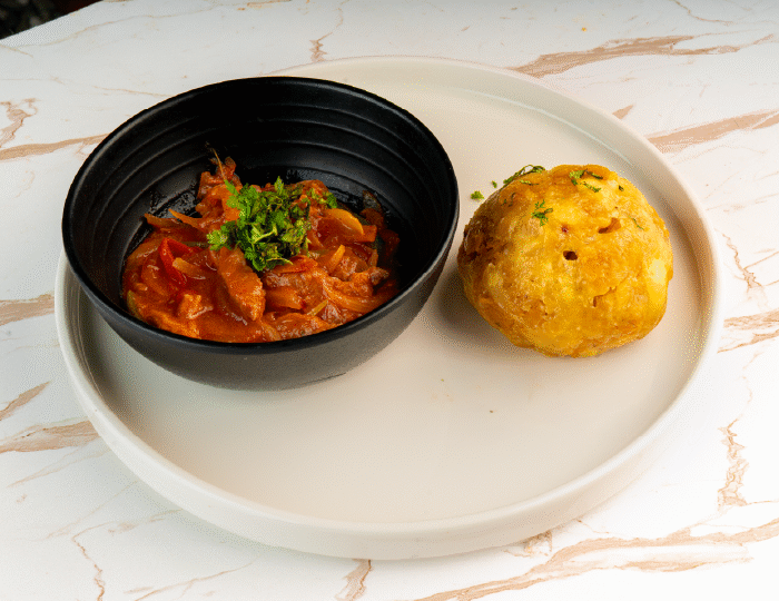 Brochetas jugosas de salchicha ahumada y huevos de codorniz, acompañadas de tomate cherry fresco y un toque cremoso de mayonesa. Ideal para comenzar el día con alegría.